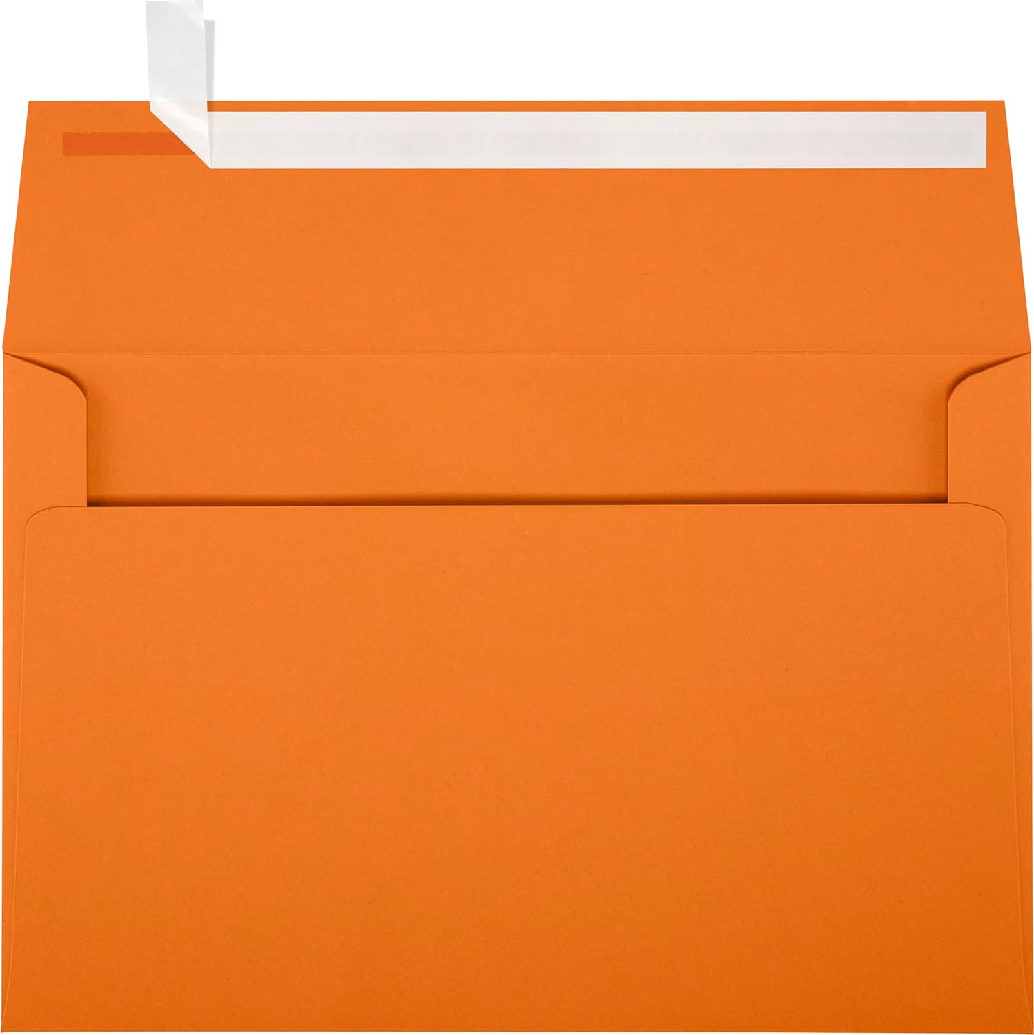 LUXPaper A9 Invitation Envelopes | Peel & Press | 5 3/4" x 8 3/4" | Mandarin Orange | 80lb. Text | 50 Qty
