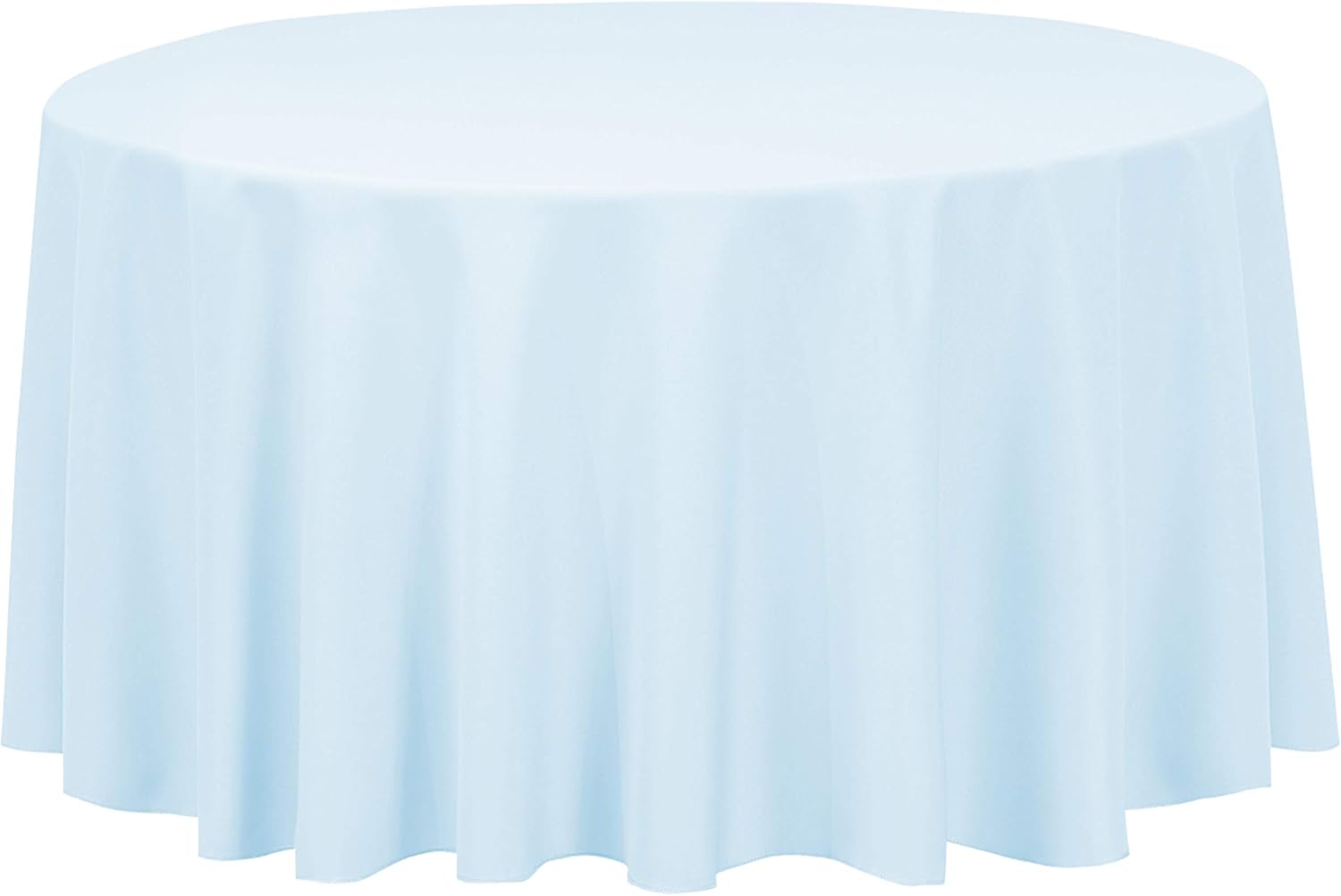LTC LINENS Baby Blue Tablecloth 120 in Round for 60 Inch Circular Table - Washable, Wrinkle Resistant Polyester Fabric Cloth for Baby Shower, Wedding