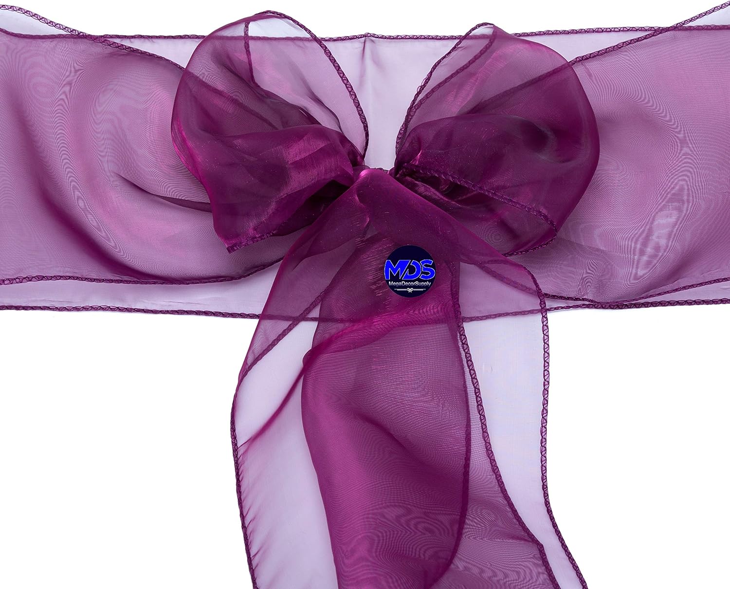 - The 7" x 108" organza sash is cut entirely from one single piece of fabric, leaving plenty of length with tying the fabric into bows or other shapes based on your own style. It can be fits to any banquet chair, folding chair or Chiavari chairs.