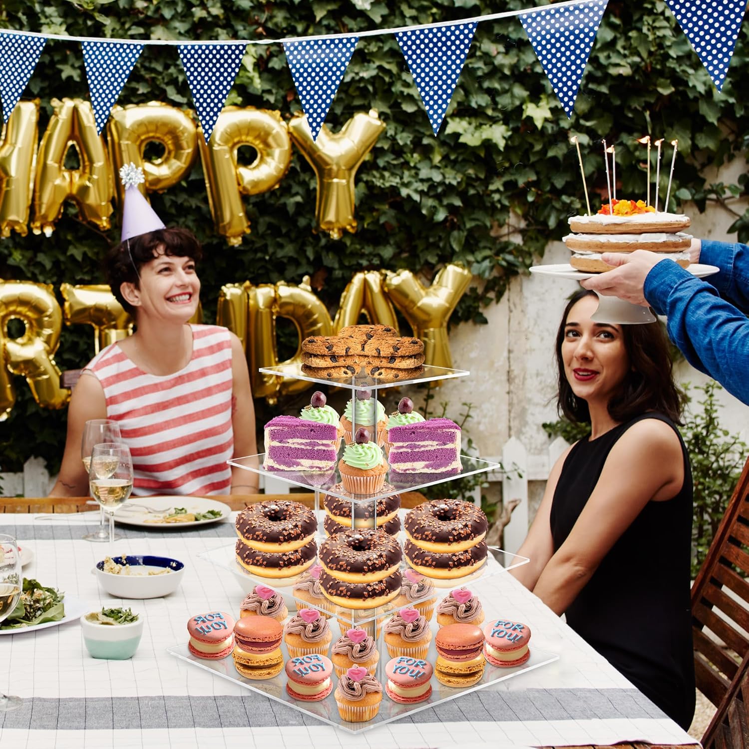 - Tower Design: Our cupcake stand has four acrylic plates with 4.7" distance between them. You can remove any of the superior plates and reassemble them freely. Each pastry rack is made with premium 4 mm thick acrylic, being very durable and resistant.