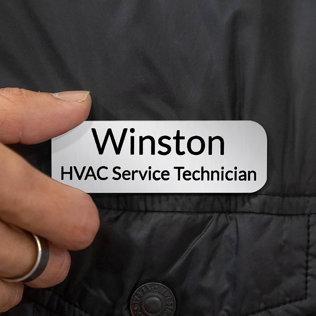 Name Tag/Badge Blanks - 10 Pack - Brushed Silver 1" X 3", Round Corners, Magnetic Backing