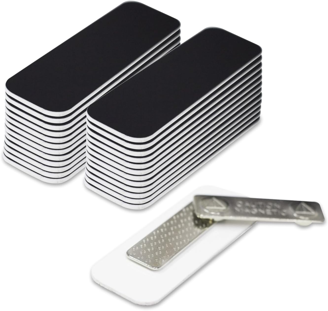 - 25-Pack Blank Plastic Name Badges with Magnetic Backing (Unassembled) – ideal for offices, schools, events, and conferences.