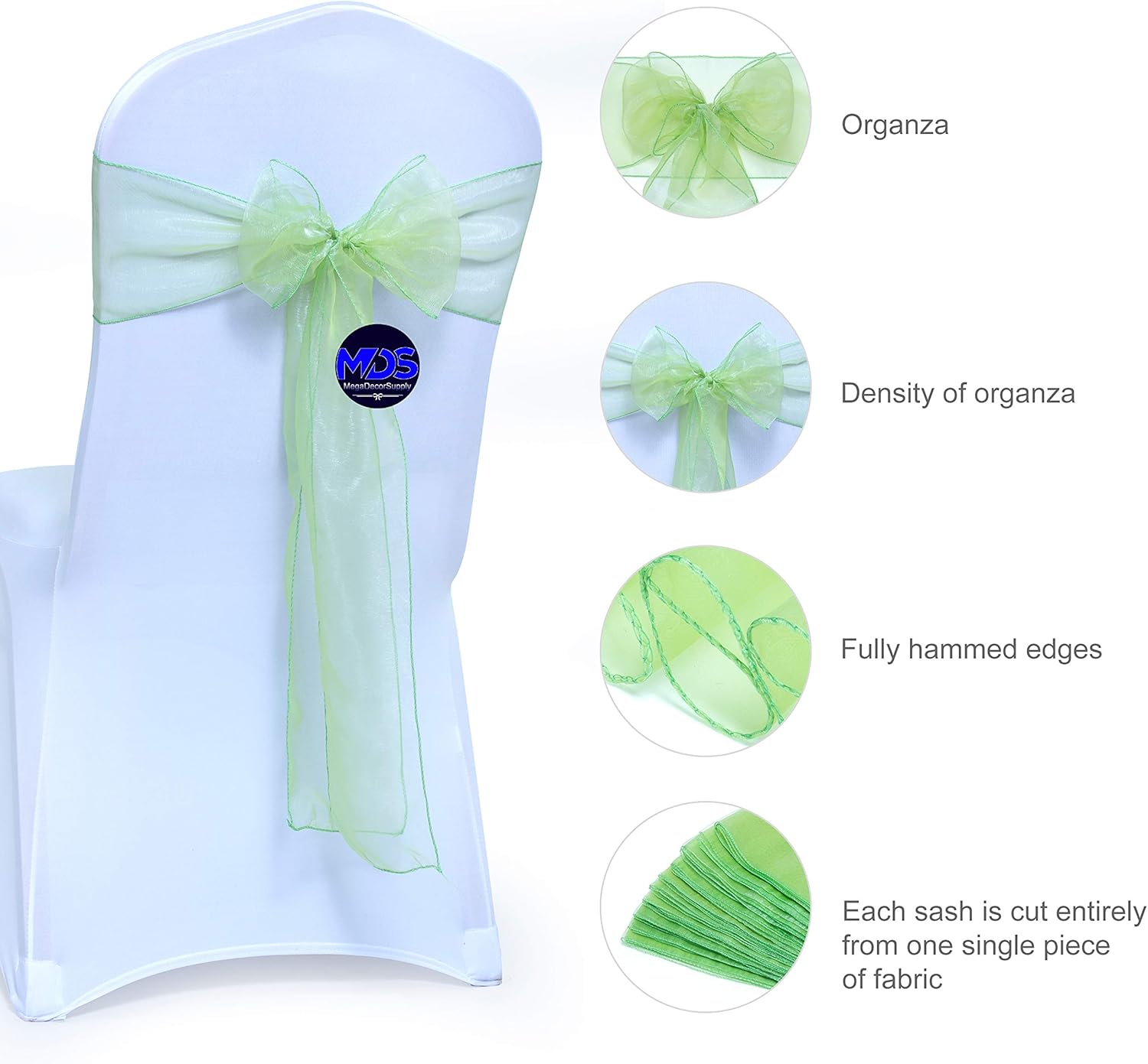 MDS Pack of 10 PCS Organza Chair Sashes Wider Dining Chair Bows Ribbon Tie Back for Wedding Party Birthday Bridal Shower Reception Event Banquet Home Chair Cover Decoration - Apple Green