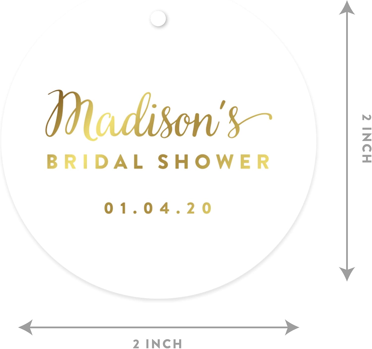 Andaz Press Personalized Round Circle Wedding Gift Tags, Metallic Gold Ink, Bridal Shower, 24-Pack, Custom Made Any Name