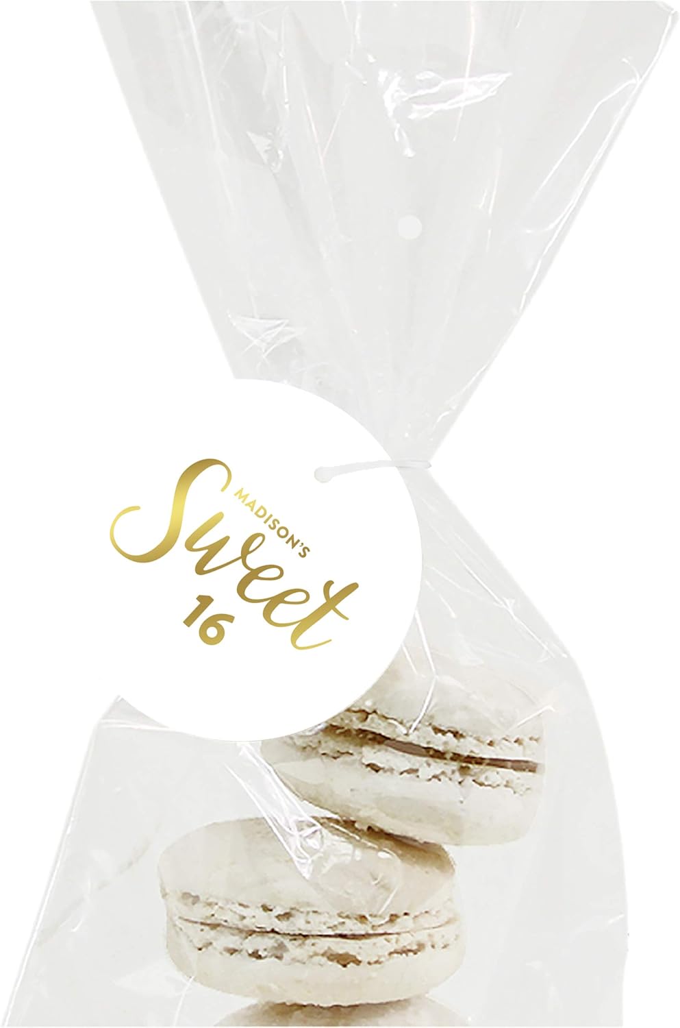 Andaz Press Personalized Round Circle Birthday Gift Tags, Metallic Gold Ink, Sweet 16 Birthday, 24-Pack, Custom Made Name, Not Gold Foil