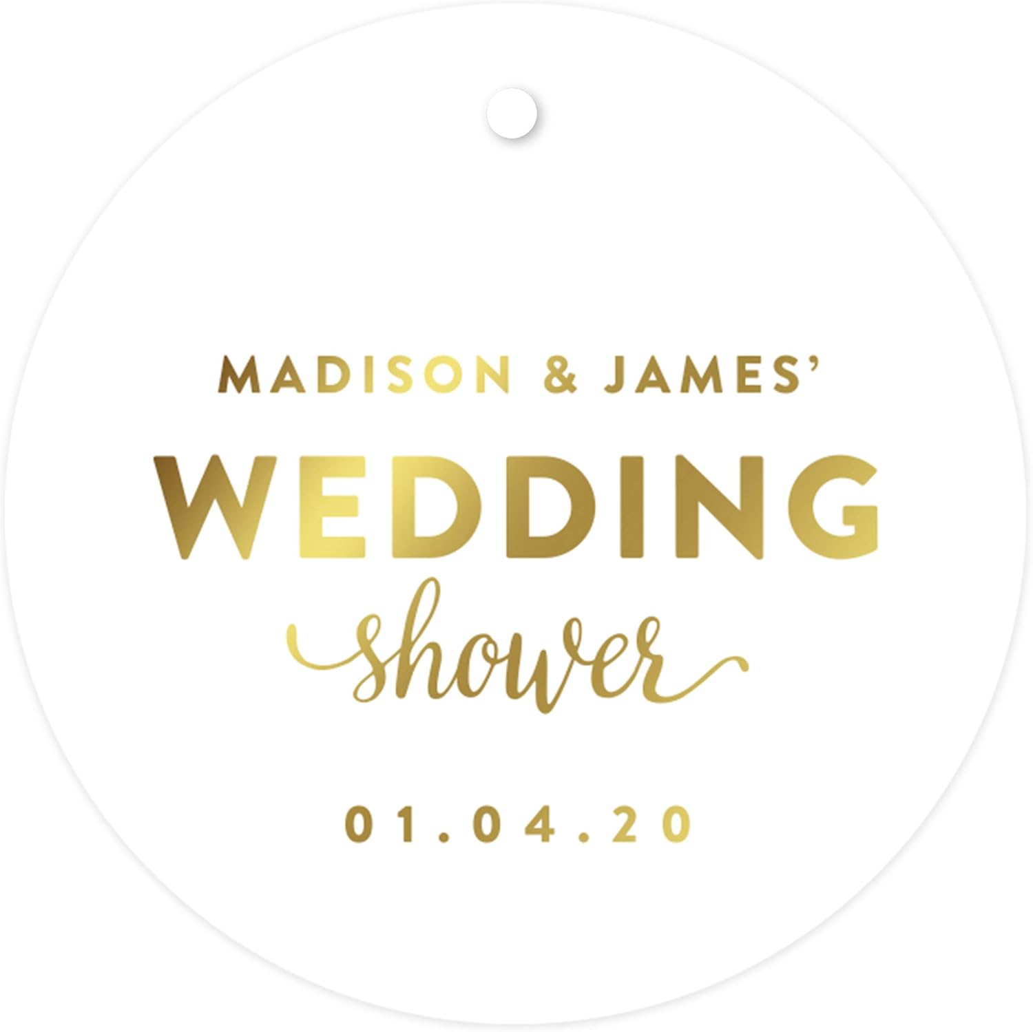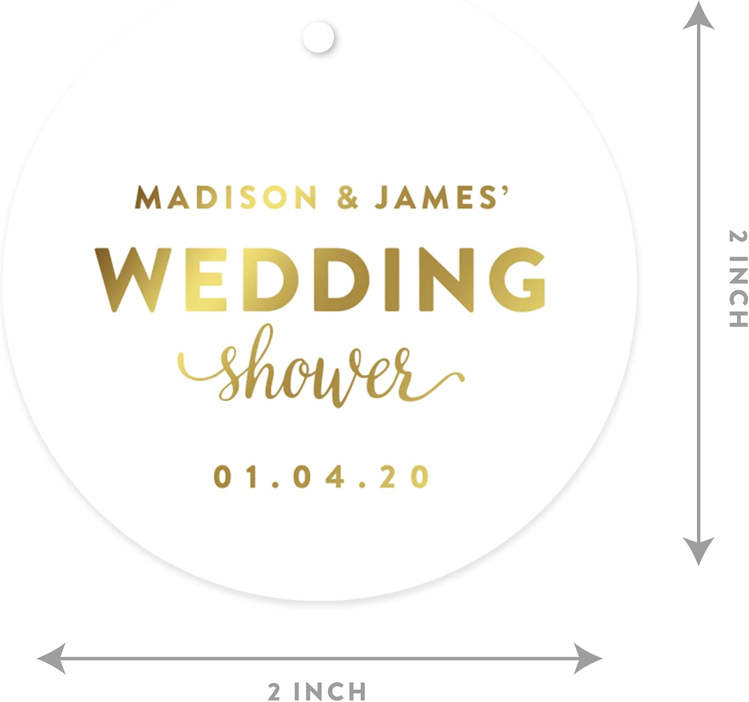 Andaz Press Personalized Round Circle Wedding Gift Tags, Metallic Gold Ink, Wedding Shower, 24-Pack, Custom Made Any Name