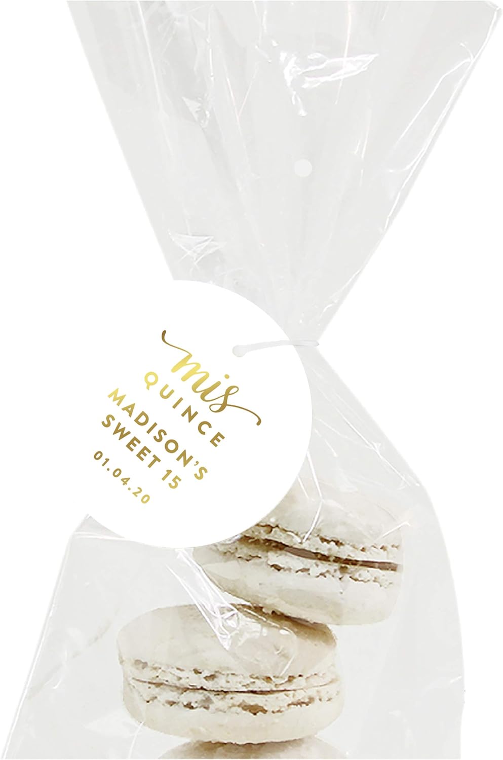 Andaz Press Personalized Round Circle Birthday Gift Tags, Metallic Gold Ink, Sweet 15 Birthday, Mis Quince Quinceanera, 24-Pack, Custom Made Name, Gold Party Supplies