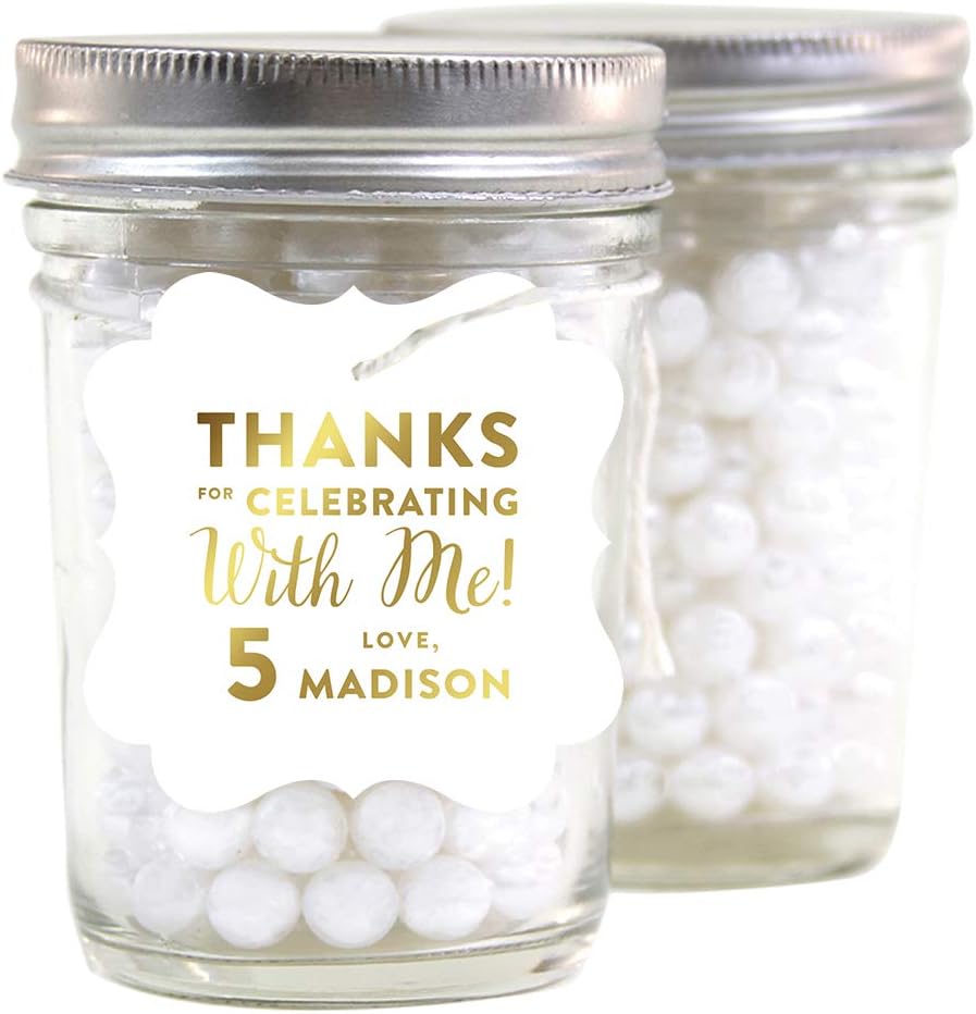 Andaz Press Personalized Fancy Frame Square Birthday Gift Tags, Metallic Gold Ink, Thanks for Celebrating with Me with Age, 24-Pack, Custom Made Name Age, Gold Decorations