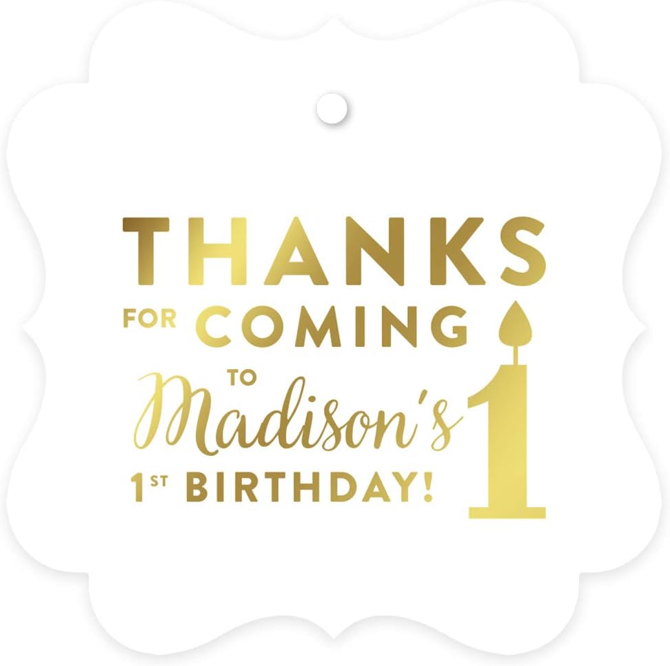 - Reliable 1st Birthday Thank You Tags Personalized Labels: These labels are suitable for custom 1st birthday favors tags when paired with ribbons or twine; printed on matte finish paper as personalized thank you tags for birthday treats and trays; works as accents for bags labeled with thank you for coming to my birthday tags during events; these thank you for coming tags birthday party are suitable for guest packaging; labeled for sweet trays using 1st birthday thank you gifts tags