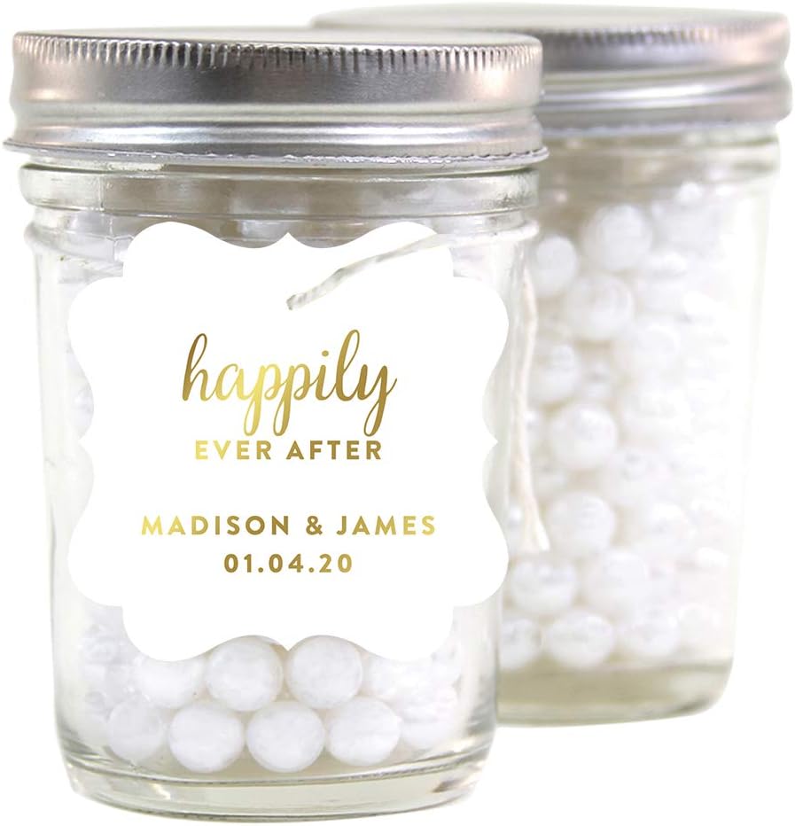 Andaz Press Personalized Fancy Frame Square Wedding Gift Tags, Metallic Gold Ink, Happily Ever After, 24-Pack, Custom Made Any Name