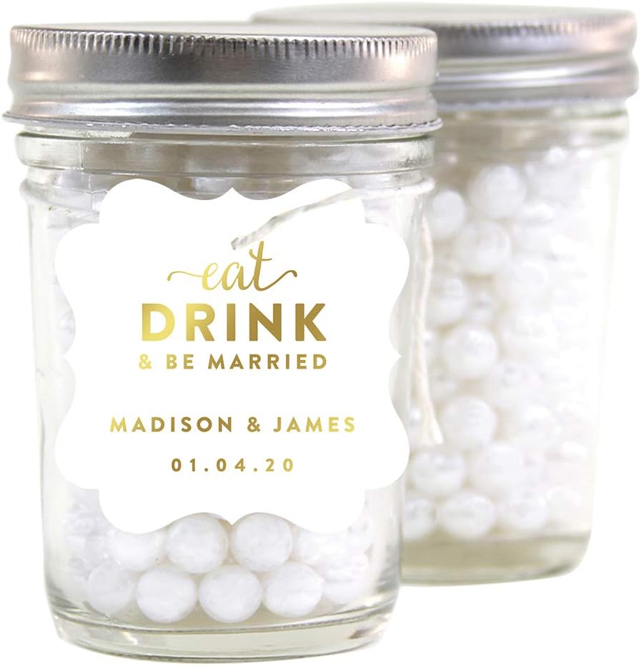 Andaz Press Personalized Fancy Frame Square Wedding Gift Tags, Metallic Gold Ink, Eat Drink and Be Married, 24-Pack, Custom Made Any Name