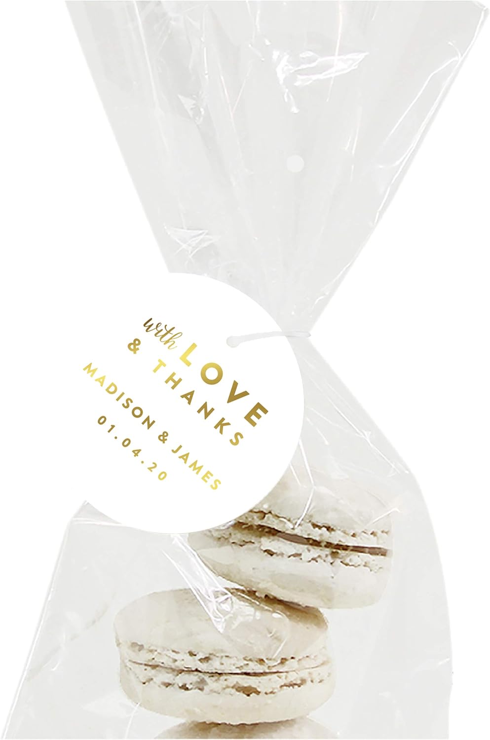 Andaz Press Personalized Round Circle Wedding Gift Tags, Metallic Gold Ink, with Love and Thanks, 24-Pack, Custom Made Any Name