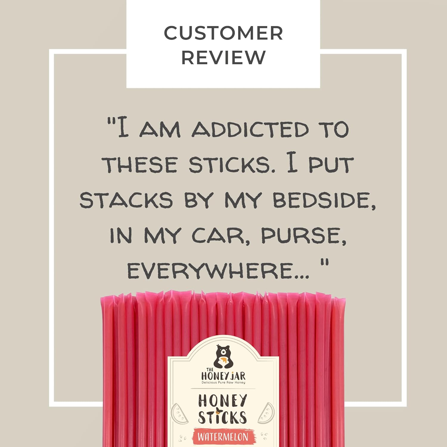 The Honey Jar Watermelon Flavored Honey Sticks - Pure Honey Straws For Tea, Coffee, or a Healthy Treat - One Teaspoon of Flavored Honey Per Stick - Made In The USA with Real Honey - (50 Count)