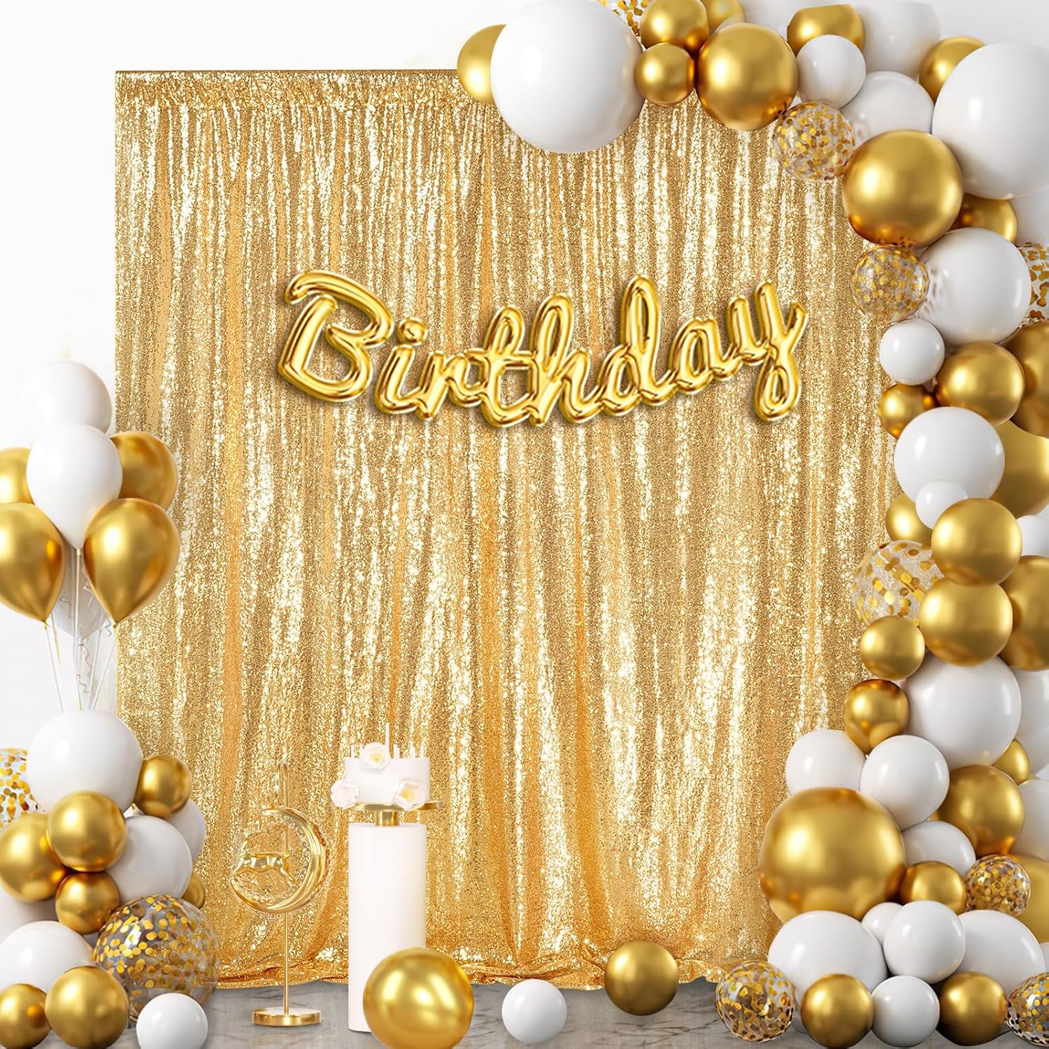 - Gold Backdrop Curtain: The total area covered by sequins backdrop is 7FT long x 7FT Width.With a 4-inch rod pocket on the top for easy hanging.