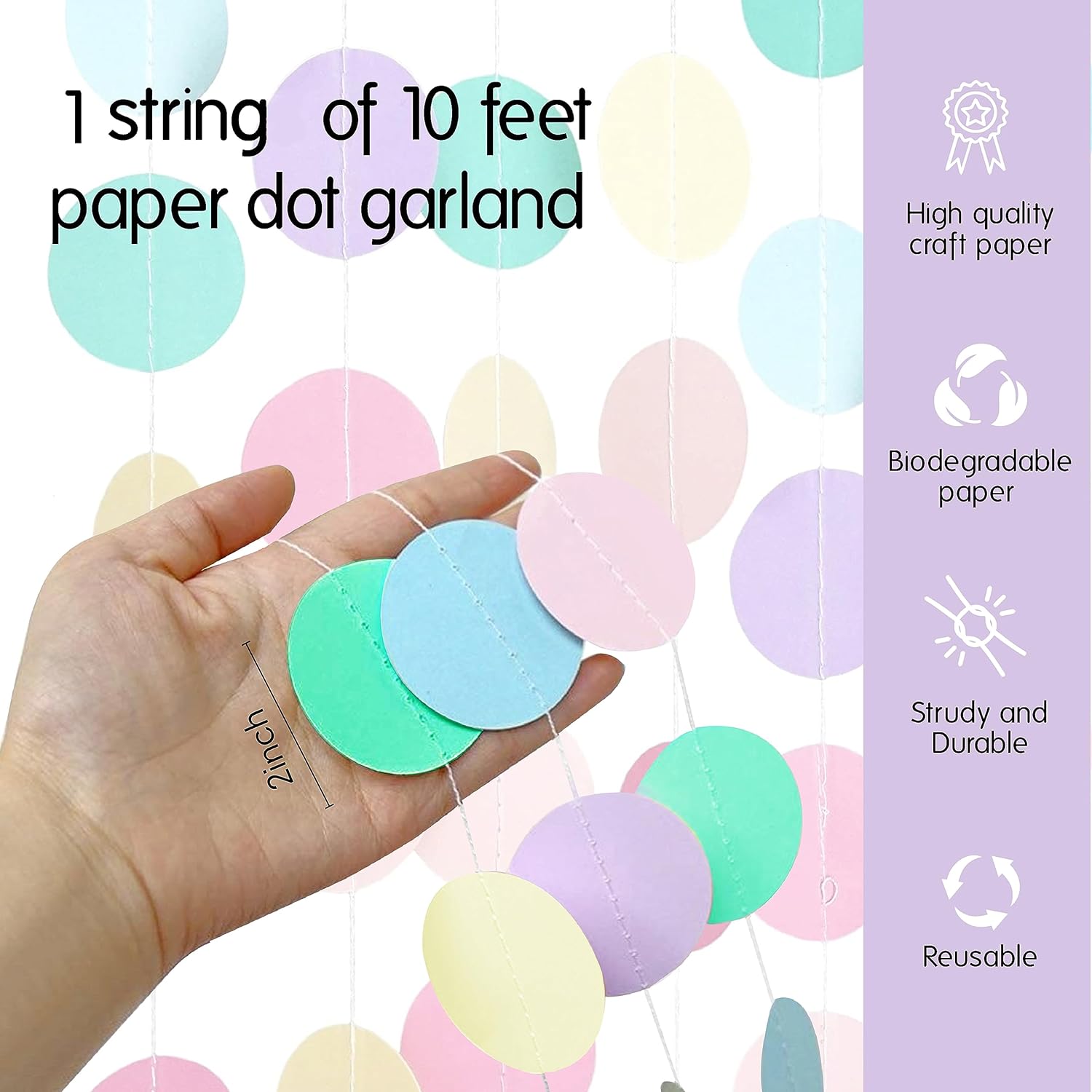 Circle Dots Paper Party Garland Streamer Backdrop (10 Feet Long) - Rainbow Pastel