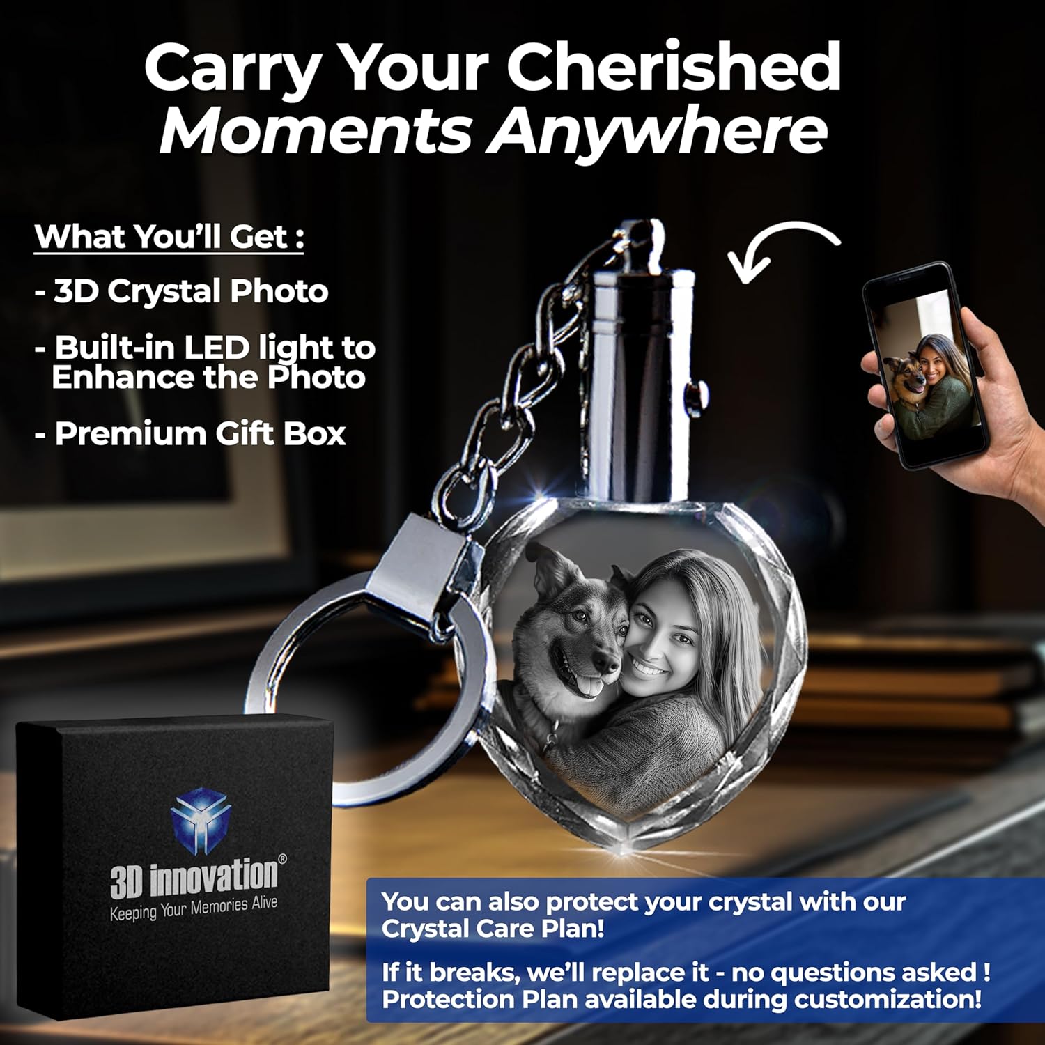 3D innovation Personalized Crystal Keychain Photo with LED Light Custom Laser Etched Key Chain, Valentines Gifts Keepsake