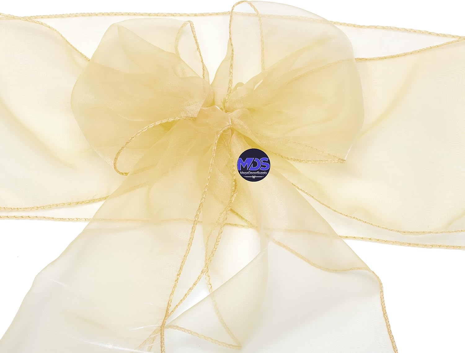 MDS Pack of 25 PCS Organza Chair Sashes Wider Dining Chair Bows Ribbon Tie Back for Wedding Party Birthday Bridal Shower Reception Event Banquet Home Chair Cover Decoration - Beige