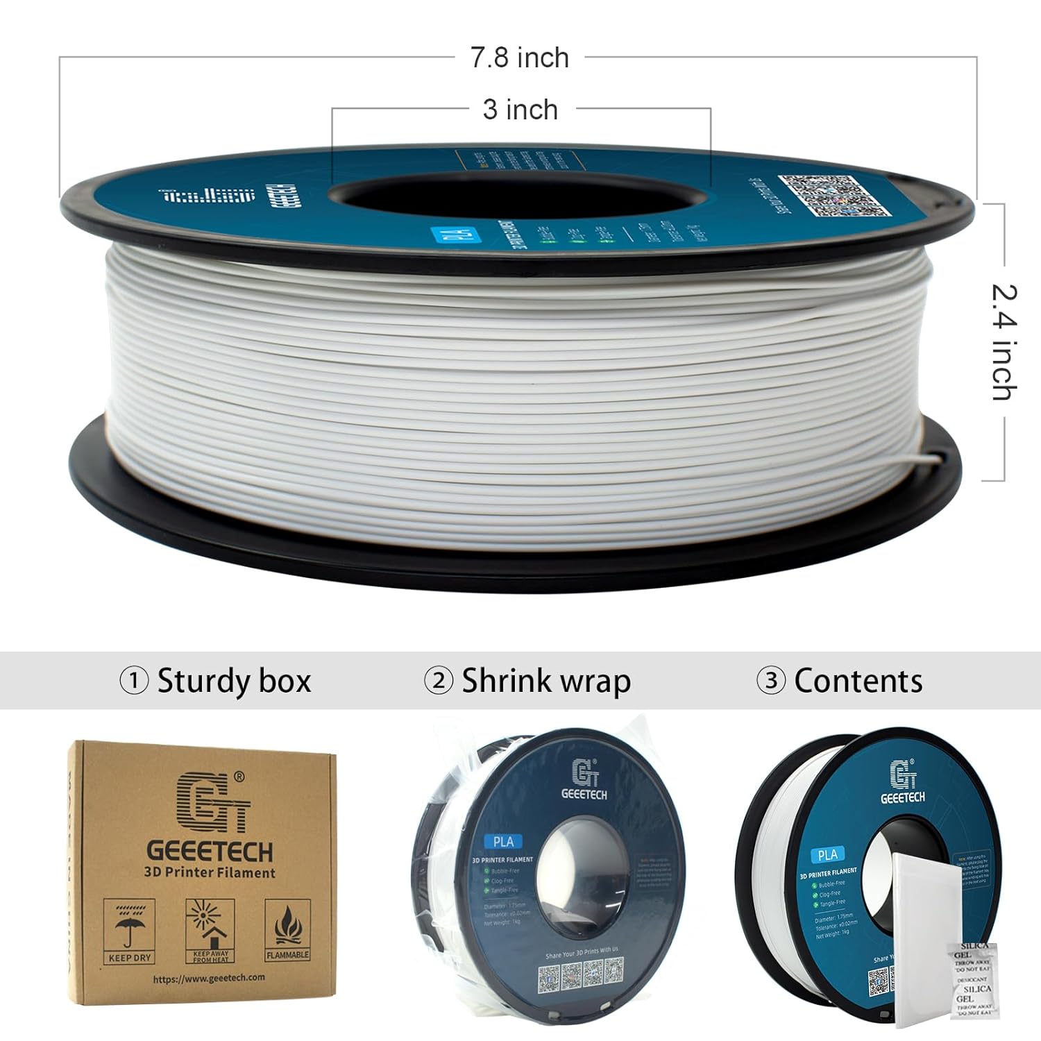 Geeetech 1.75mm PLA 3D Printer Filament, 1kg Spool (2.2lbs), Upgrade Tidy Winding Tangle-Free, Dimensional Accuracy +/- 0.02 mm, White