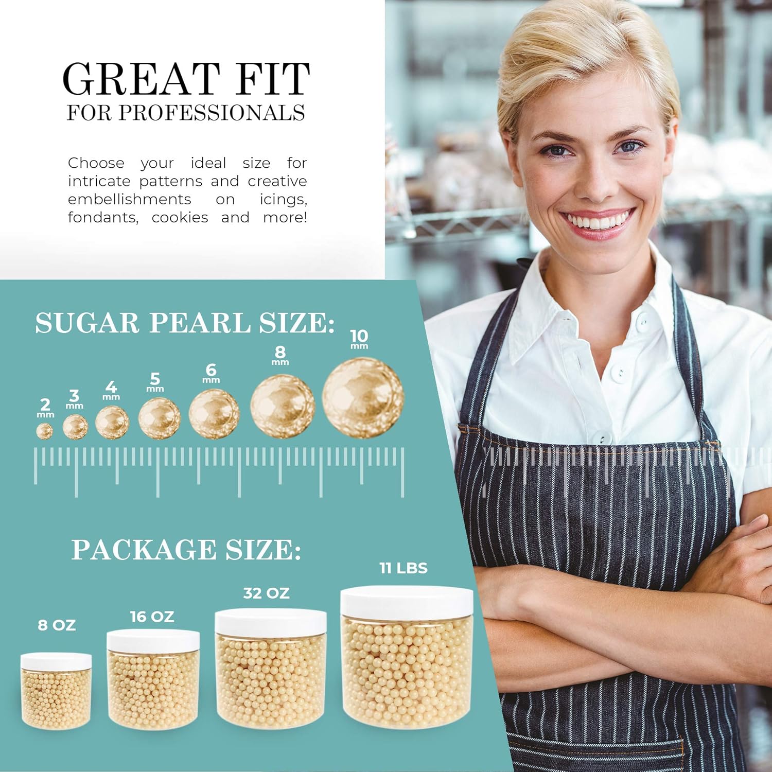 - π DECORATE MORE β Unlike other toppings, each pack of our cake supplies contains enough sparkling balls to adorn many treats. Bedeck more desserts with our 8 oz. ivory sugar pearls.