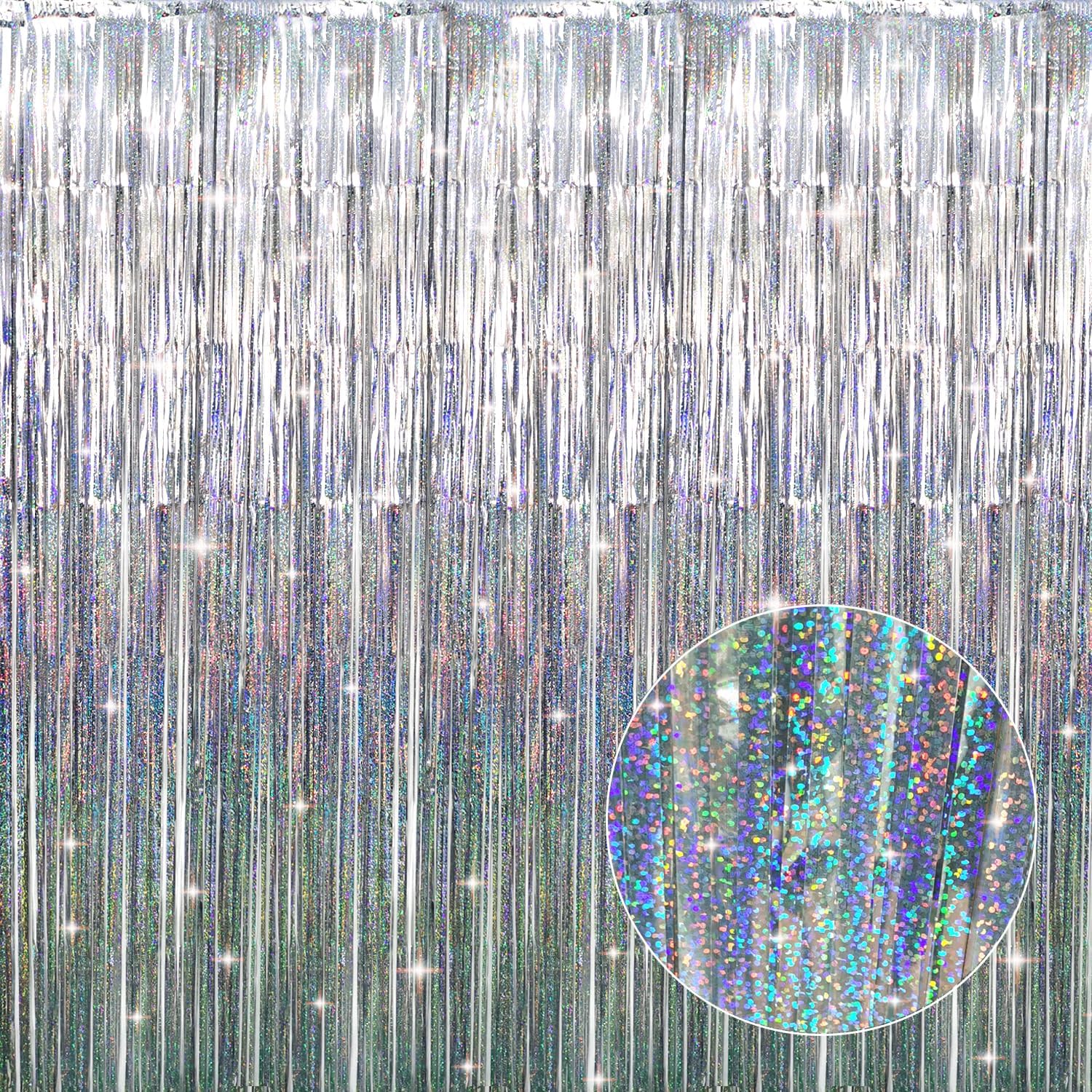 - Package Includes:1 pack shiny silver foil fringe curtain,3.2 ft x 8.2 ft each,suitable for hanging on a door or coverage a wall fully