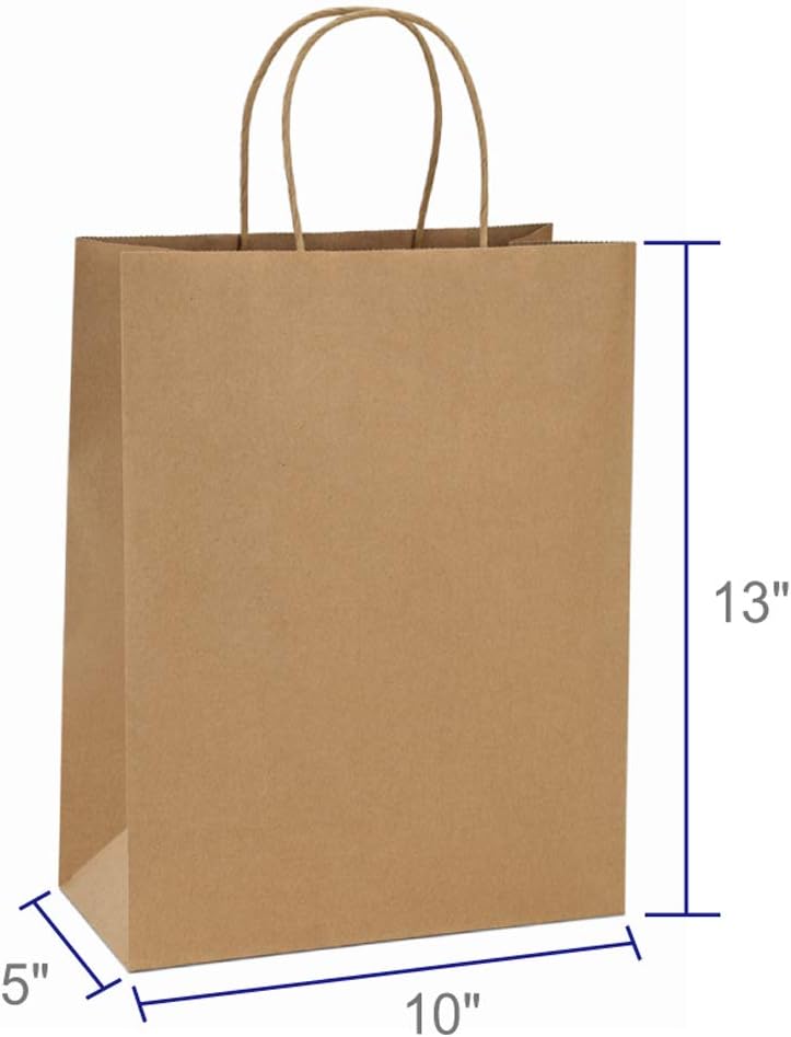 BagDream 10x5x13 Kraft Shopping Bags 100Pcs Brown Paper Bags with Handles Bulk, for Gifts, Merchandise, Retail, Party Favor, Take-out, Grocery, Recycled Paper Gift Sacks