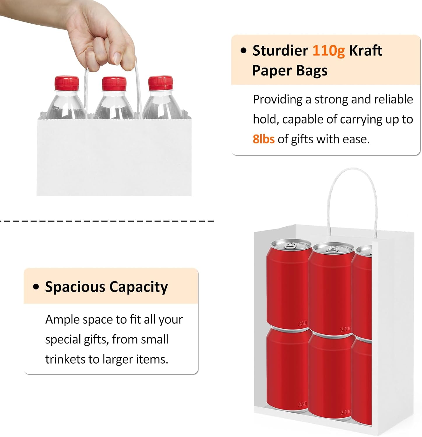 BagDream 50Pcs Gift Bags 8x4.25x10.5 Kraft Paper Gift Bags with Handles Bulk for Shopping, Wedding, Party Favor, Merchandise, Retail, White Paper Grocery Sacks
