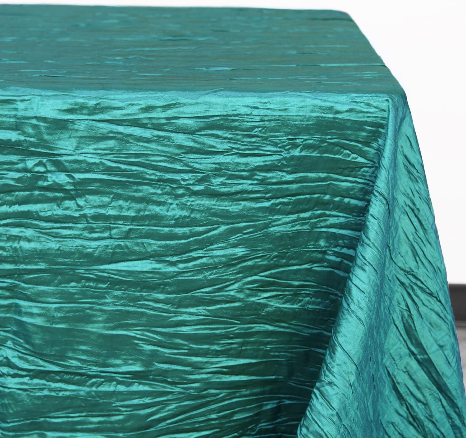 - Transform your event with our 90 x 132 inch teal crinkle taffeta tablecloth, designed to add a modern and elegant touch to wedding receptions and special occasions.