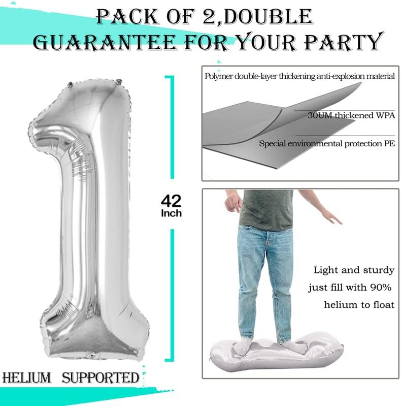 GOER Silver Number 1 Foil Balloons,Huge Number Balloons for 1st 11st Birthday Party Supplies Anniversary Decorations(3 pcs,42 inch,32 inc,16inch)