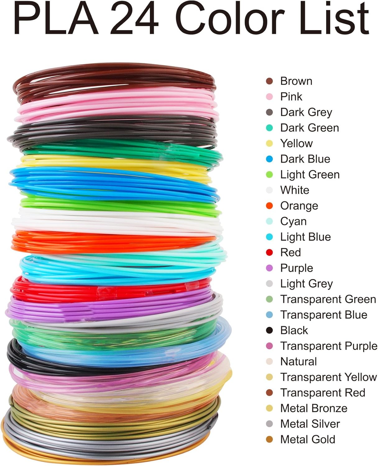 - Unique 24 Colors:It comes with 3 Metal Colors, 6 Transparent Colors and 15 Normal Various Colors; It's Great Gift for 3D Printing