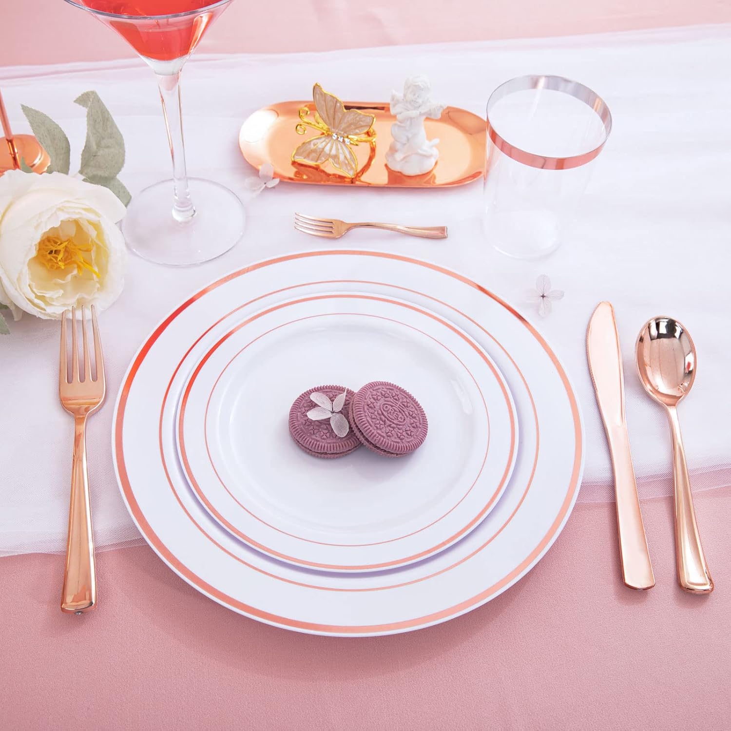 - AUTHENTIC LOOK AND FEEL - We sourced the heavy duty plastic silverware that shines and shimmers like real rose gold. The heavyweight durable design prevents breakage and can stand up to manual washing for reuse.