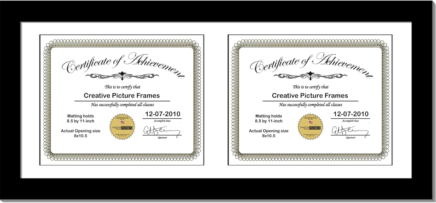 Creative Picture Frames 10X24Bk-W Black Horizontal Double Diploma Frame With 2 Opening White Mat, Holds 2-8.5X11-Inch Documents With Wall Hanger