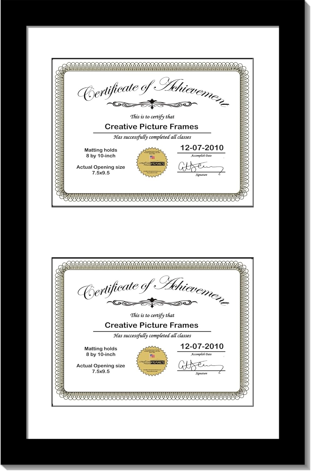 Creative Picture Frames 14X20Bk-W Black Vertical Double Diploma Frame With 2 Opening White Matting | Holds 2-8X10-Inch Documents With Installed Wall Hanger
