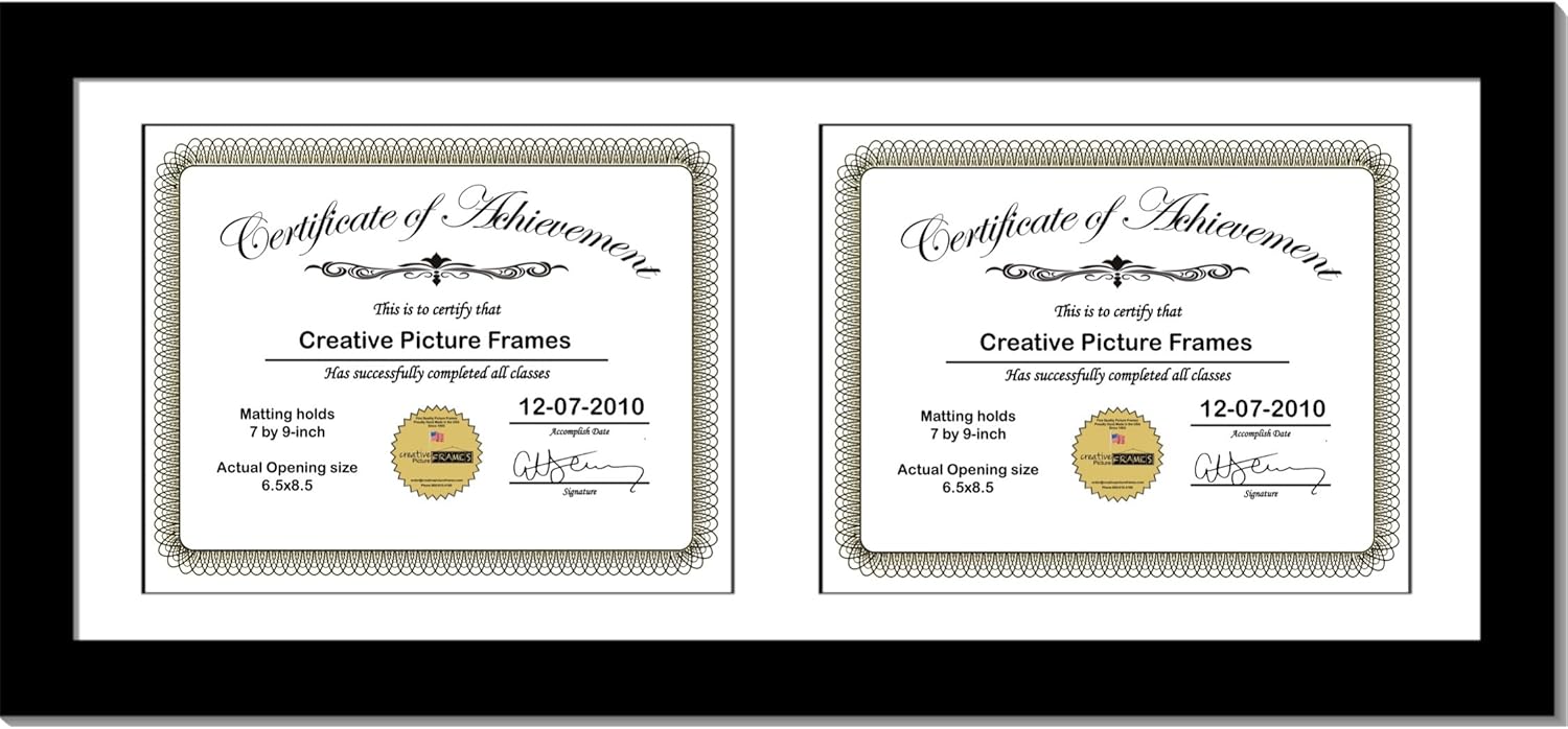 Creative Picture Frames 10X20Bk-W Black Horizontal Double Diploma Frame With 2 Opening White Matting | Holds 2-7X9-Inch Documents With Installed Wall Hanger