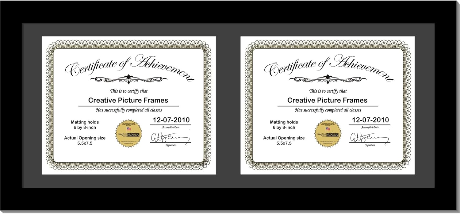 Creative Picture Frames 8X18Bk-B Black Horizontal Double Diploma Frame With 2 Opening Black Matting | Holds 2-6X8-Inch Documents With Installed Wall Hanger