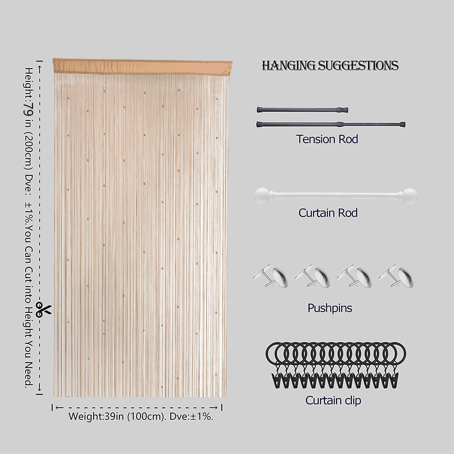 - The door curtains hang beautifully and let light in,meanwhile keep privacy,look pretty and delicate.If you need the strings to be dense,we suggest buy 2 or more.