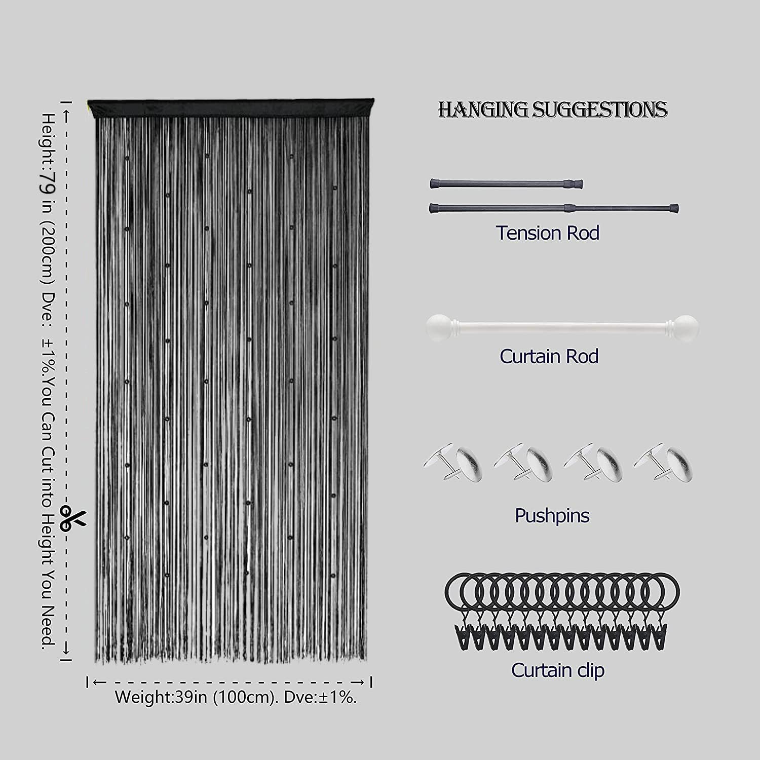 Beaded Curtain Beads Door String Curtains Ideal for Living Room Decor Wall Hanging Fringe Doorway Divider Bedroom Backdrop Hippie Window Closet Privacy Rod Pocket Dense (100x200cm,Black)