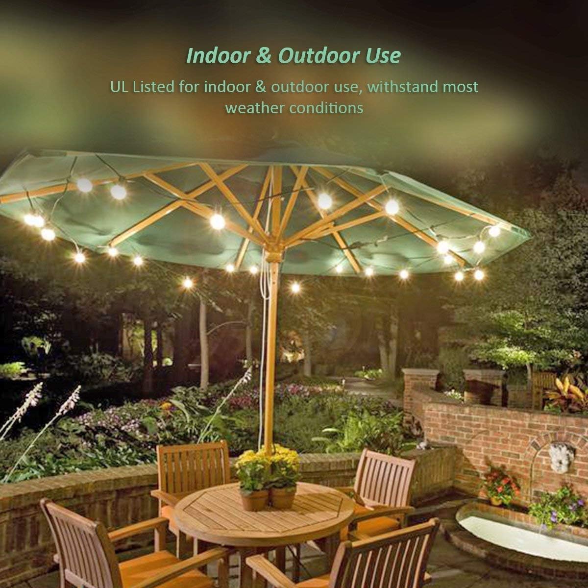- Commercial Quality & great for indoor / outdoor lighting applications. Globe string lights are the most popular outdoor string lights on Amazon now, Great for patios, decks, weddings, tents, pergola, bistro, backyards, pool umbrella, parties, Christmas decor, celebration, camping and many other occasions