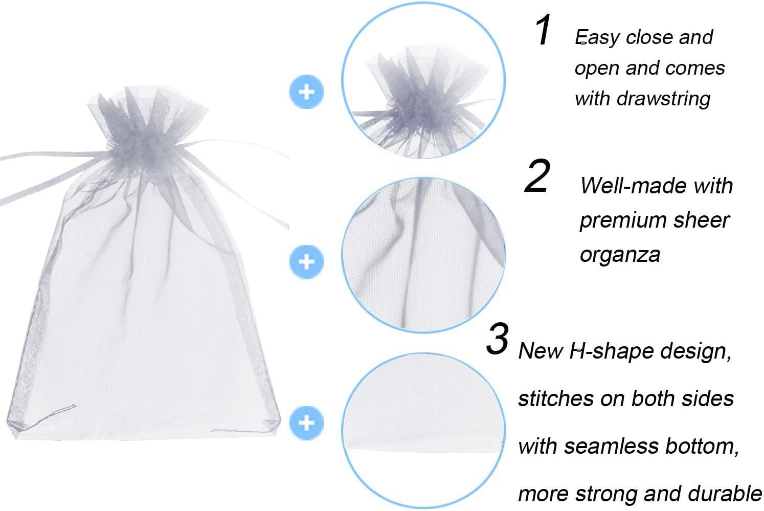 - Well-made premium organza and satin drawstring, which is very durable,touch softly and smoothly.