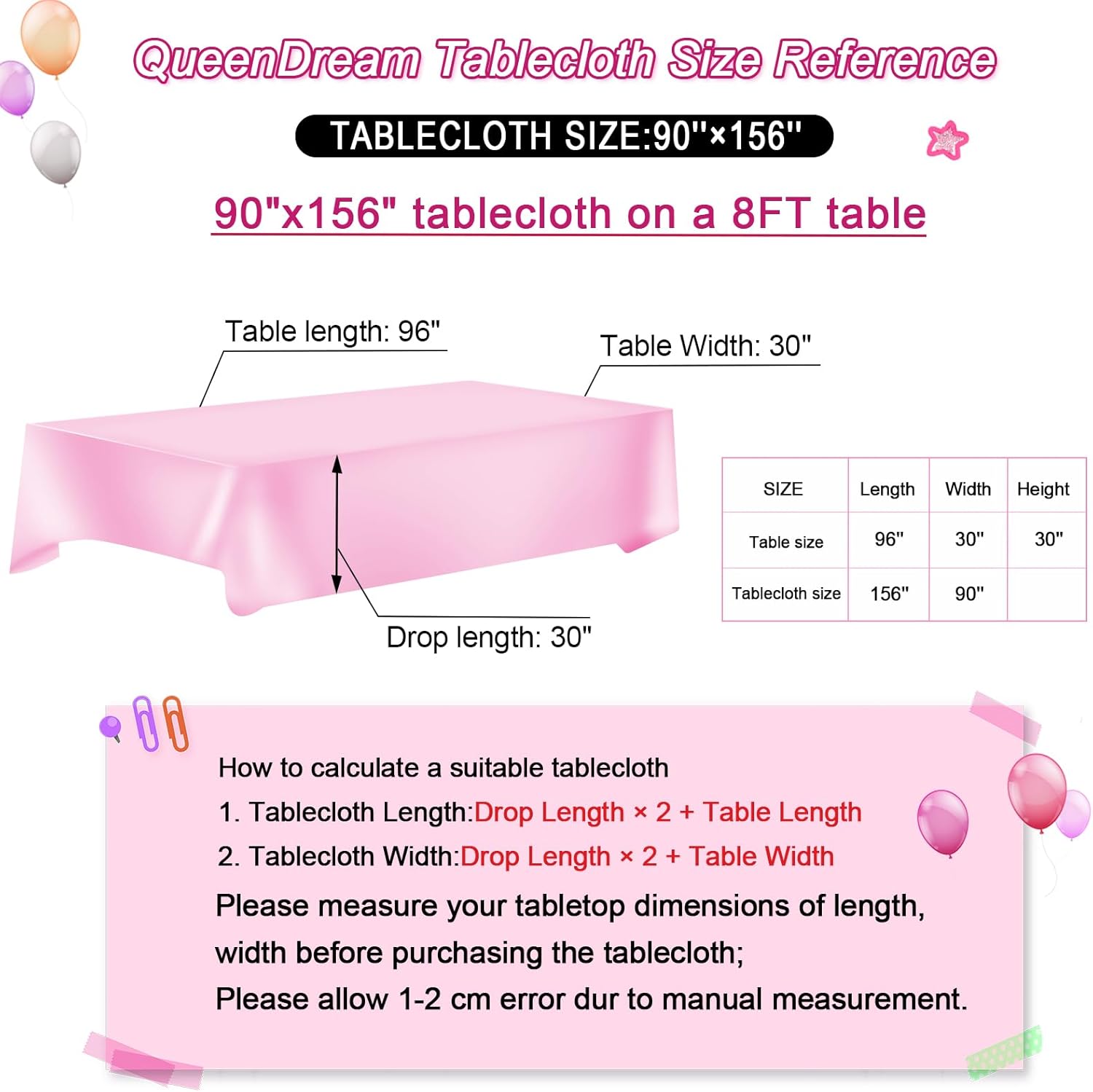 - QueenDream Warm Tip: The pictures below are for your reference ONLY and make sure your tablecloth size looking through the size picture.If you have any questions about the product, please feel free to contact us.