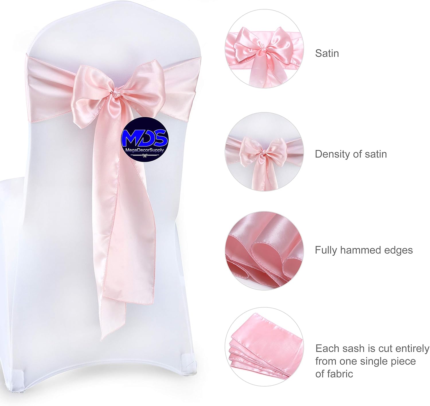 - Material:- MDS chair sashes are made of high quality shiny satin material fabric, Especially if you iron it. It becomes slippery smooth and ultra glossy. Satin has a soft, shiny finish filament fiber such as silk, polyester, or nylon Chair Bows Sashes can match with any color chair cover. These chair sashes can give your chairs a uniform and professional look. Simple to use. Make your guest impress.