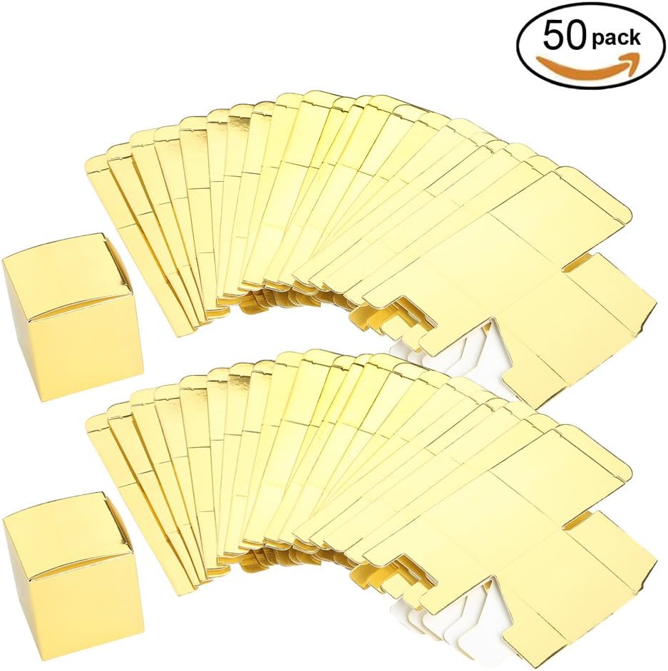 AWELL Gold Gift Candy Box Bulk 2x2x2 inch Small Party Favor Box, Gold Glitter, Pack of 50