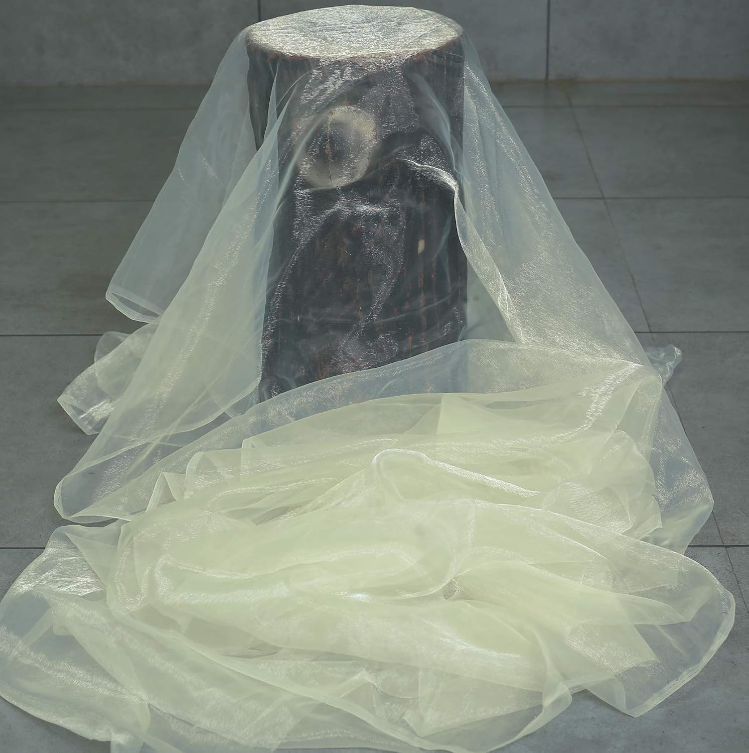 VDS Ivory Organza Fabric, 15 Yards Continuous, 45β Wide, Wedding Party Decoration Iridescent Crystal Sheer Shiny Organza Tulle Bridal Dress DIY Crafts Costume Sewing Backdrop Arch Cloth
