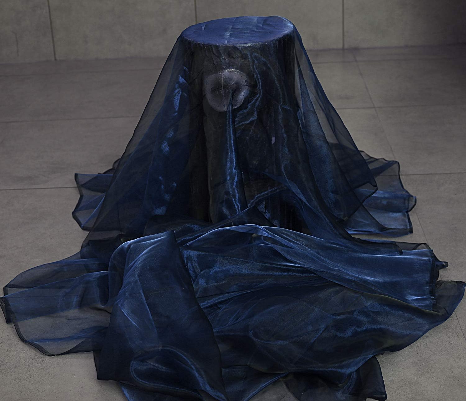 VDS Navy Blue Organza Fabric, 35 Yards Continuous, 45β Wide, Wedding Party Decoration Iridescent Crystal Sheer Shiny Organza Tulle Bridal Dress DIY Crafts Costume Sewing Backdrop Arch Cloth