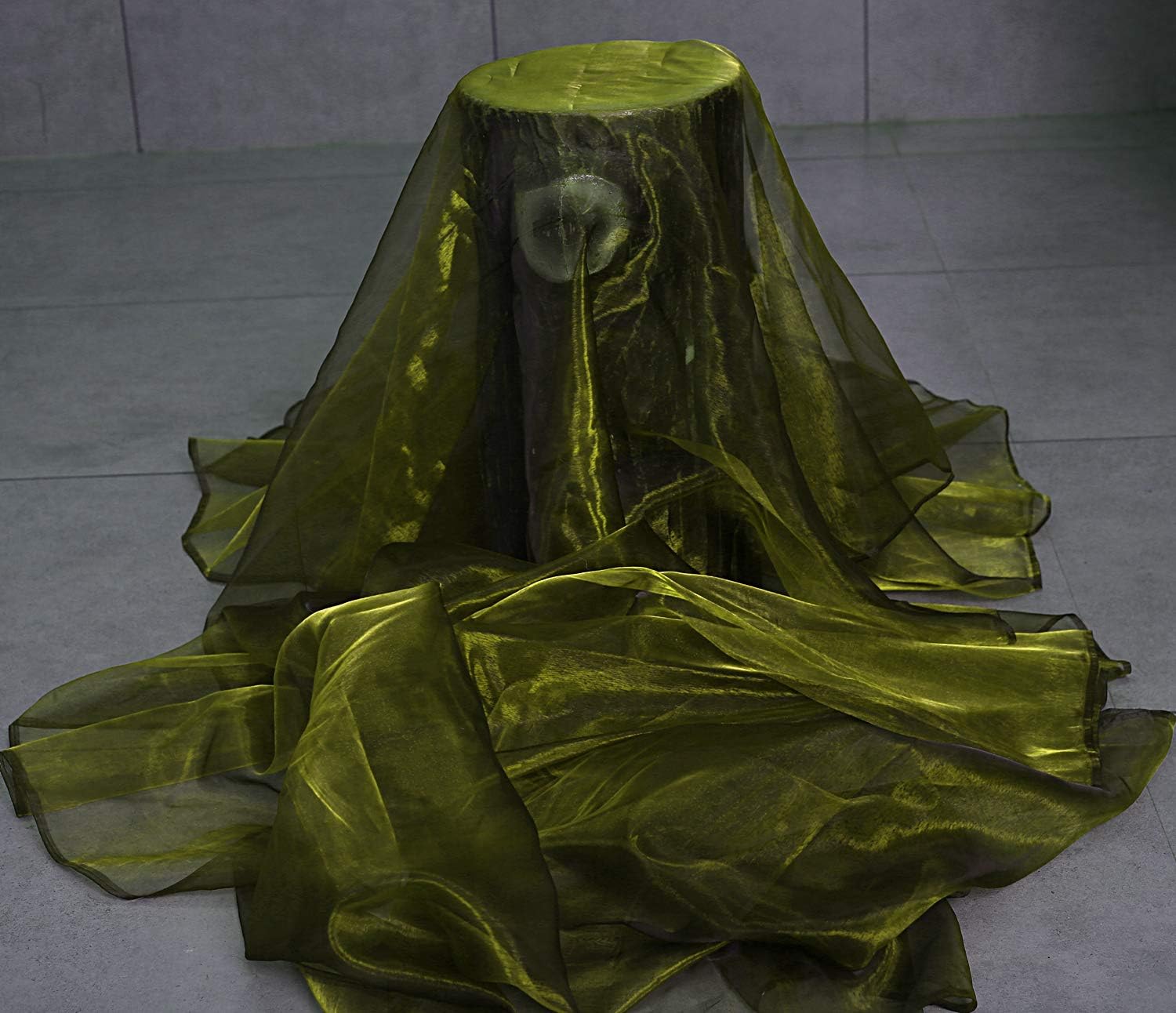 VDS Olive Green Organza Fabric, 45 Yards Continuous, 45β Wide, Wedding Party Decoration Iridescent Crystal Sheer Shiny Organza Tulle Bridal Dress DIY Crafts Costume Sewing Backdrop Arch Cloth