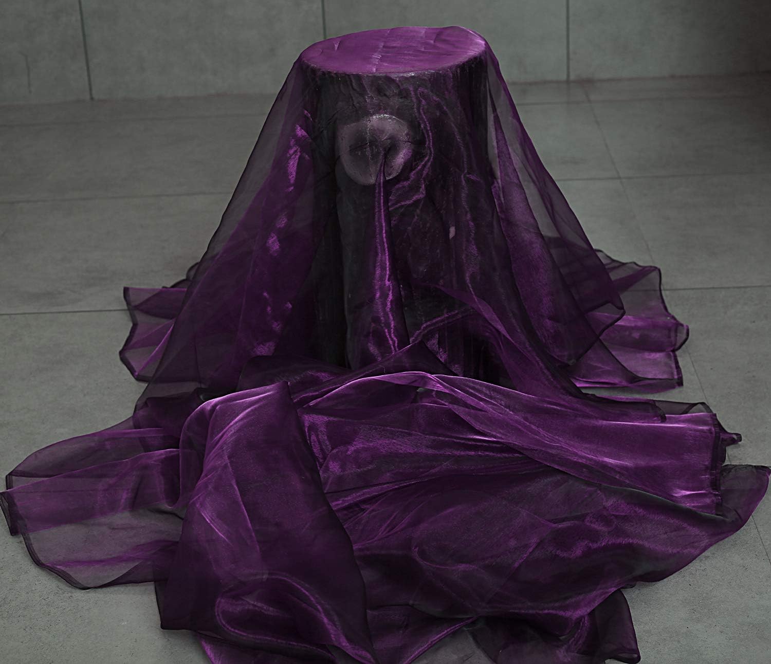 VDS Dark PurpleOrganza Fabric, 50 Yards Continuous, 45β Wide, Wedding Party Decoration Iridescent Crystal Sheer Shiny Organza Tulle Bridal Dress DIY Crafts Costume Sewing Backdrop Arch Cloth