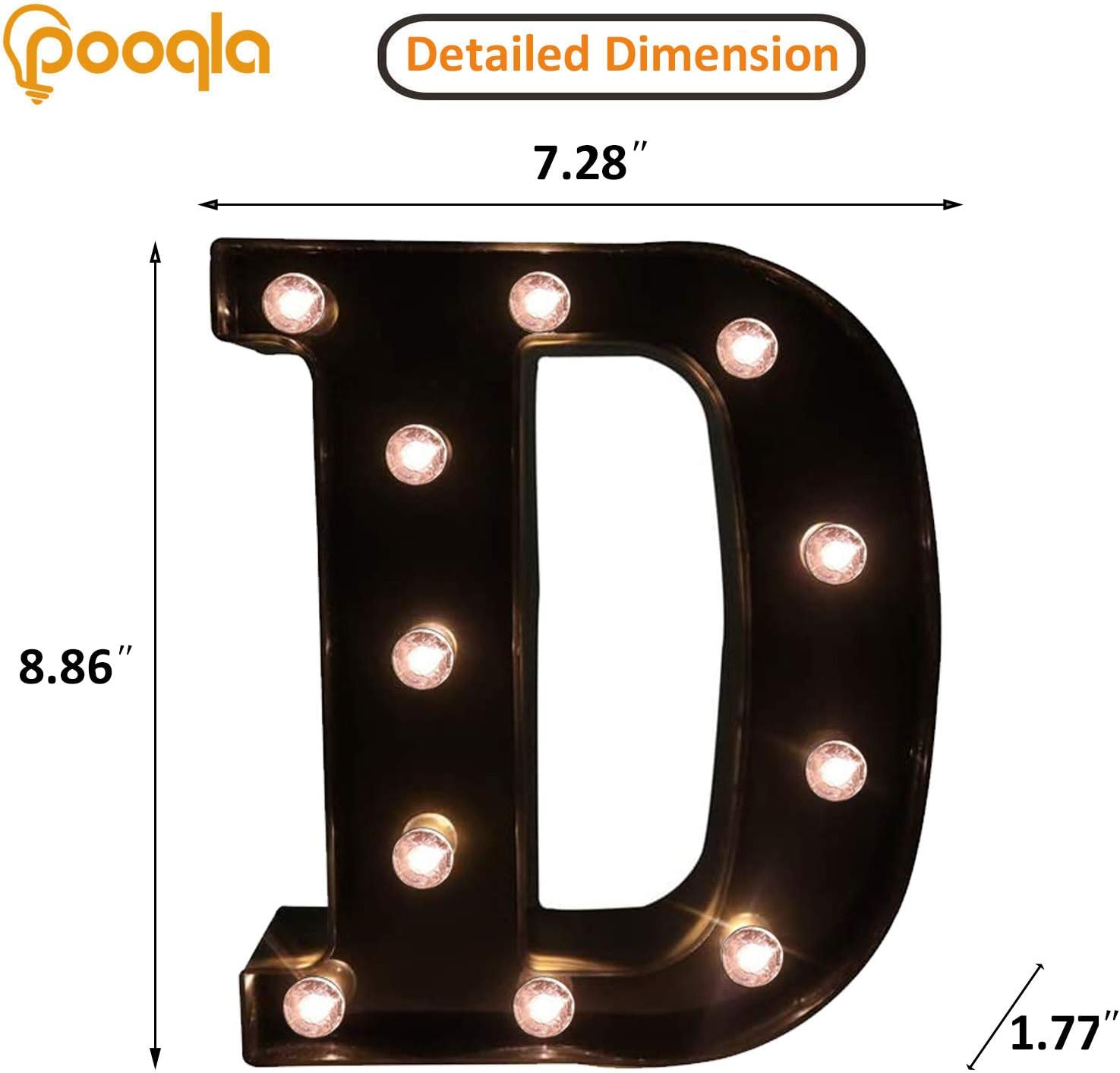 Decorative LED Illuminated Letter Marquee Sign - Alphabet Marquee Letters with Lights For Wedding Birthday Party Christmas Night Light Lamp Home Bar Decoration D, Black