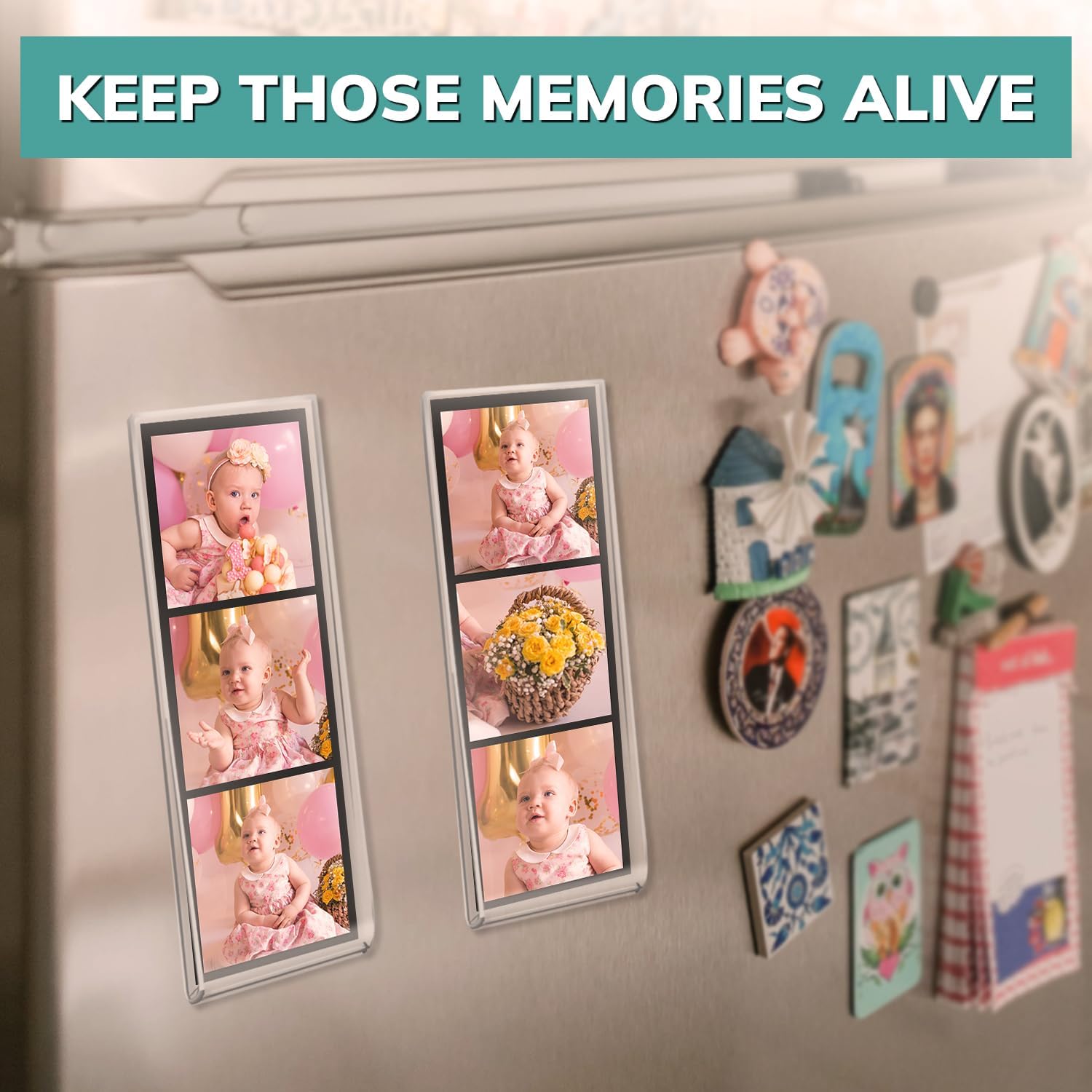 pbf PHOTO BOOTH FRAMES 2x6 Magnetic Picture Frames for Refrigerator | 2 x 6 Clear Magnetic Acrylic Frames for Photo Strips | Magnetic Photo Holders for Fridge, Locker, Sign Holder (100-Pack)