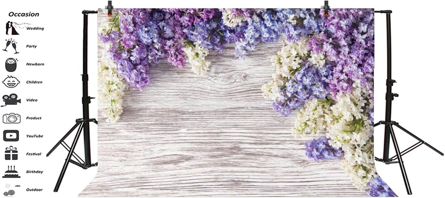 10x7ft Newborn Baby Wooden Plank Photography Backdrops Purple Lilac Flowers Bloom Bouquet Wooden Wall Girls Adults Portrait Photo Background Parties Events Decor Wallpaper Photo Studio Props