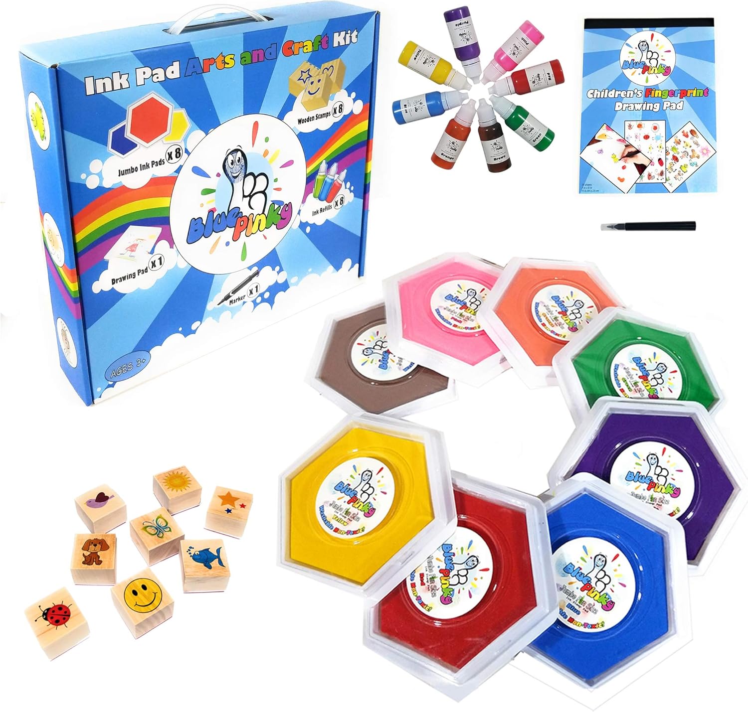 - π 8 COLOR WASHABLE INK PADS FOR KIDS STAMP - With a variety of color options this is the perfect ink pads for rubber stamps. Large size stamp pad for kids great for handprints. A fun beginners KIDS CRAFTS KIT GIFT!
