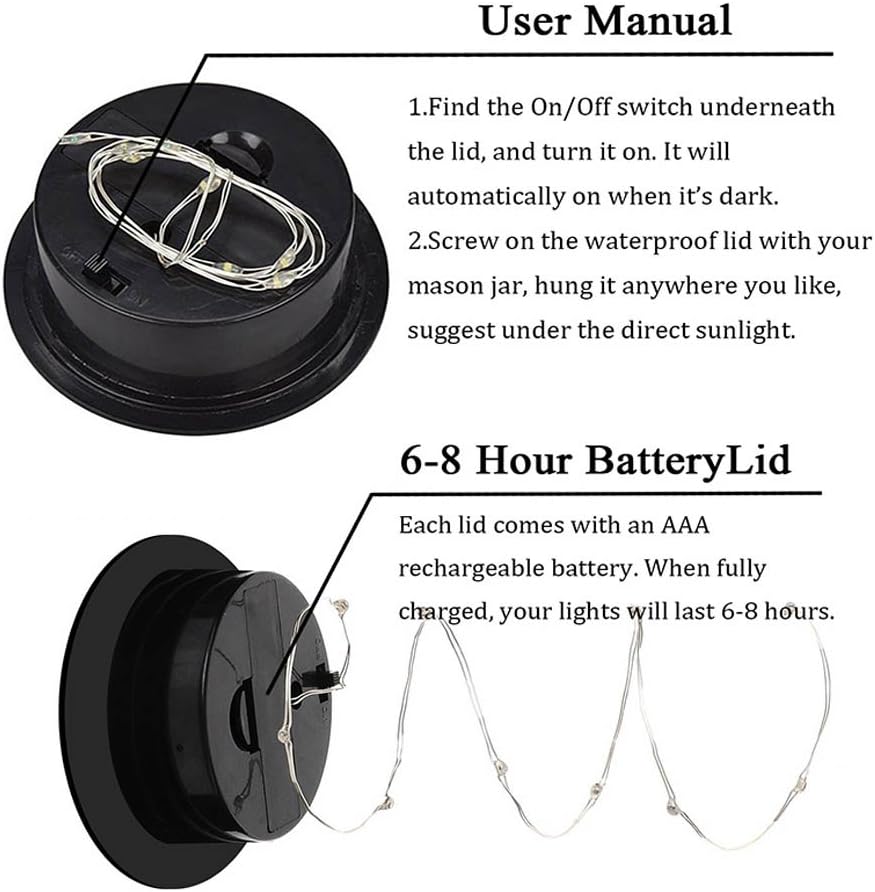 Miaro Solar Mason Jar Lights with Hanger, 6 Pack 10 LED Waterproof Warm White Fairy String Lights(NO Jars) - Perfect for Garden, Deck, Patio, Party, Wedding and Christmas Decorative Lighting